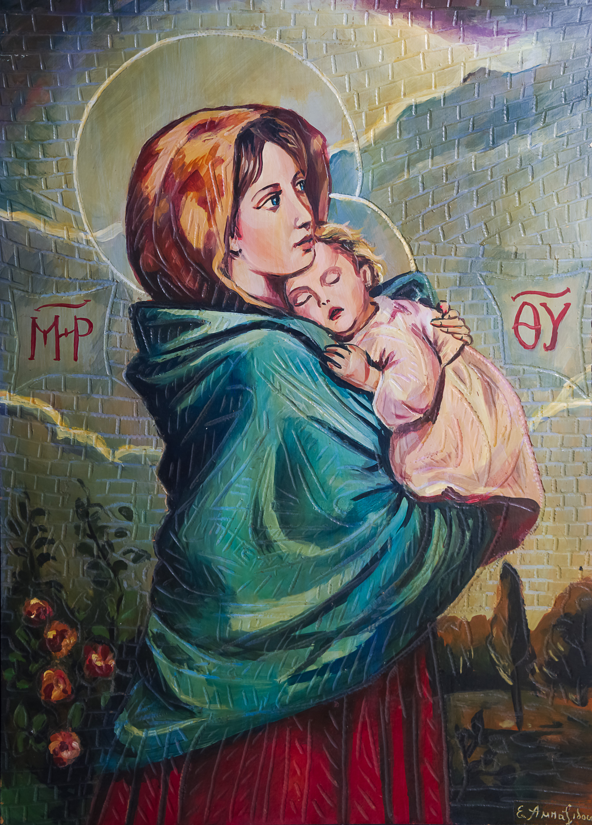 Η Παναγία με το Χριστό, χειροποίητη σκαλισμένη εικόνα